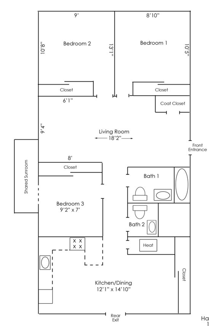 - Two EXTRA LARGE bedrooms and one medium sized bedroom.