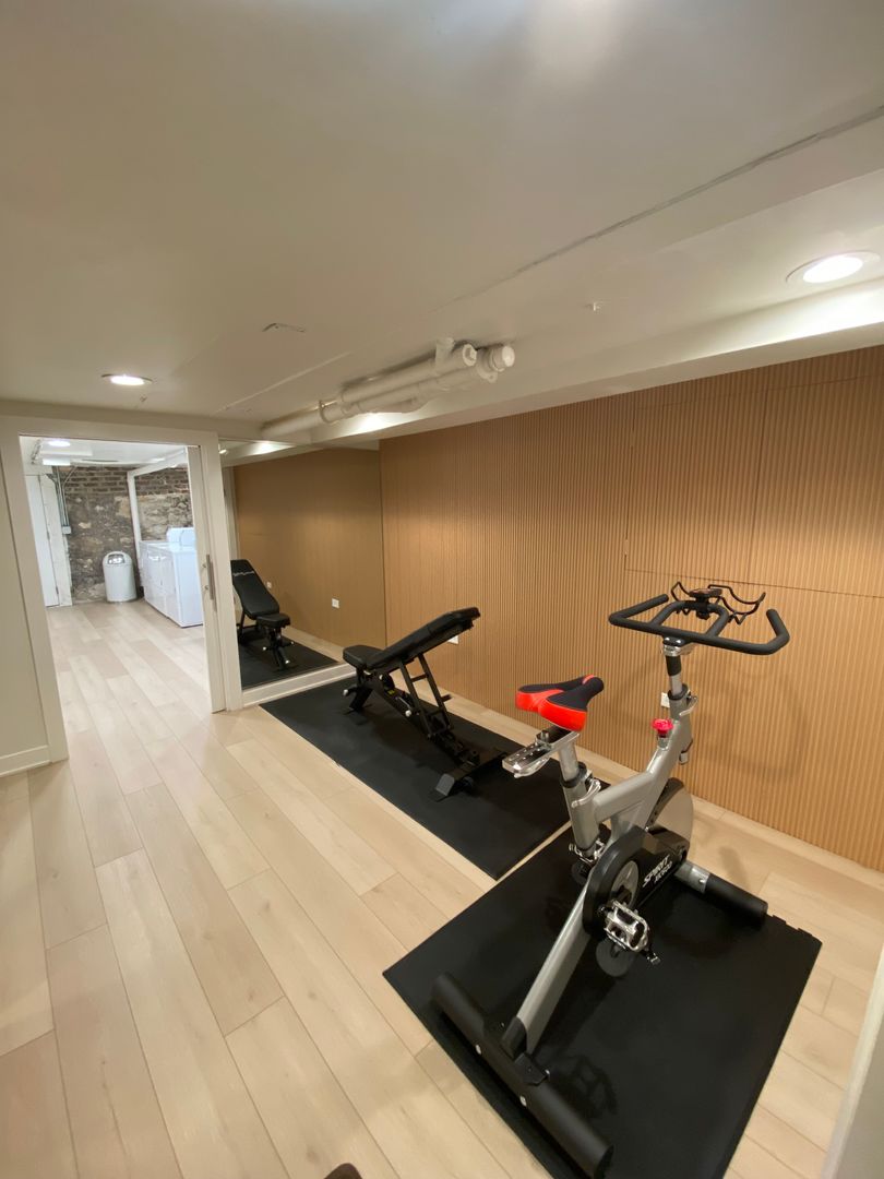 - NEW on-site gym with treadmill, elliptical, stationary bike, weights, yoga mats!