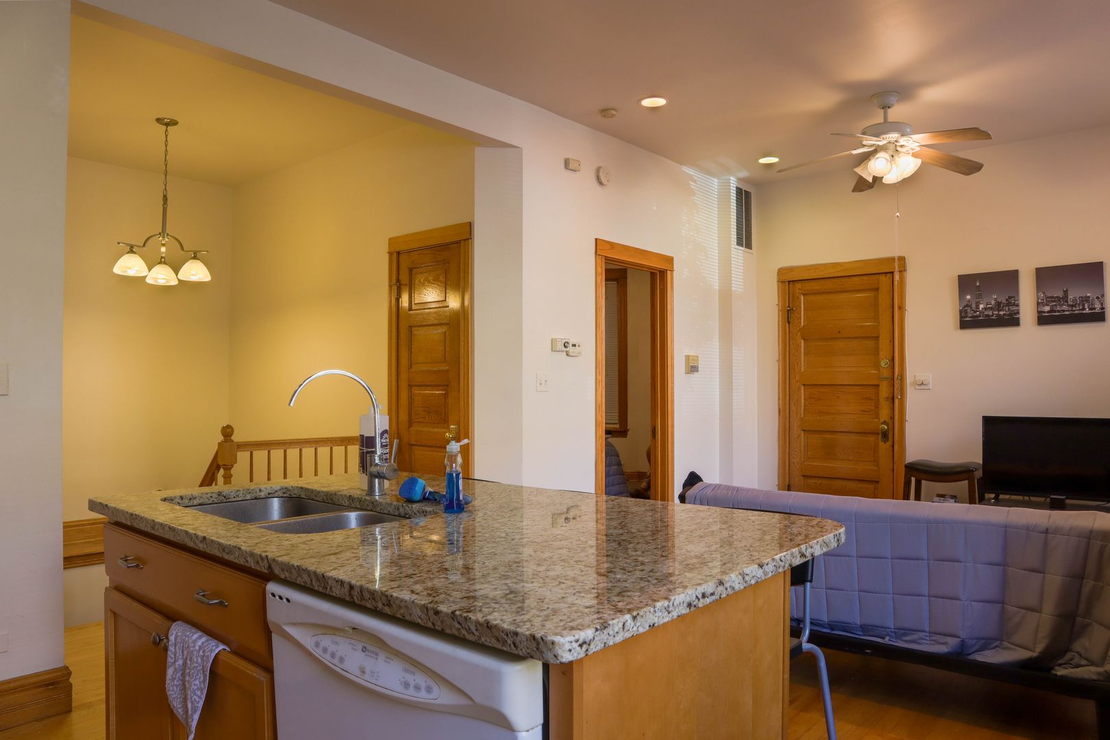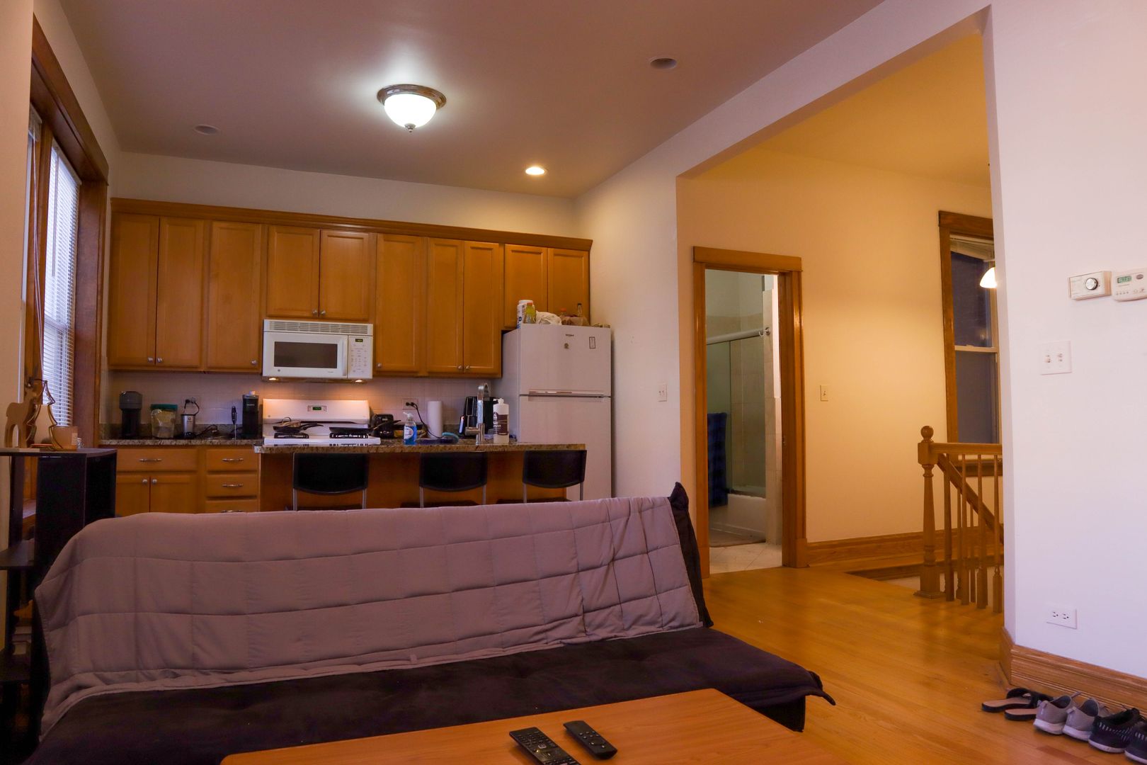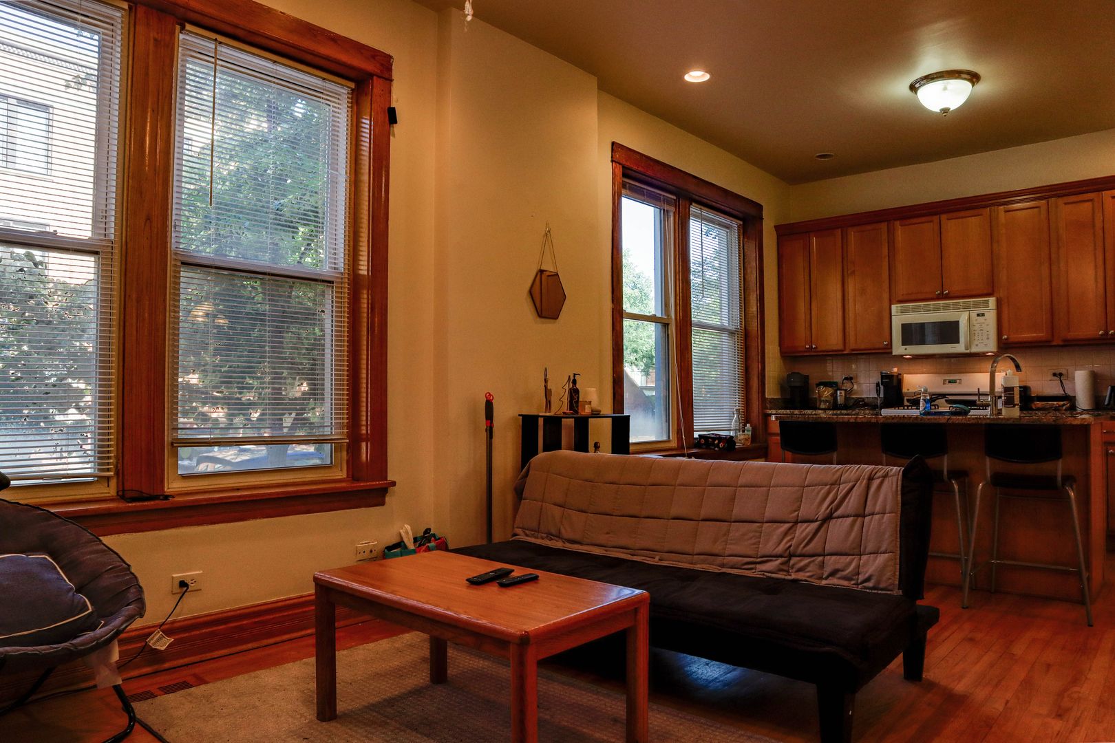 - Open layout living room and kitchen w breakfast bar.